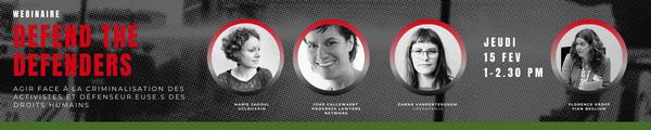 Il est encore temps de vous inscrire au Webinaire "Defend the defenders : Agir face à la criminalisation des activistes et défenseur.euse.s des droits humains" le jeudi 15 février de 13h à 14h30 CET.